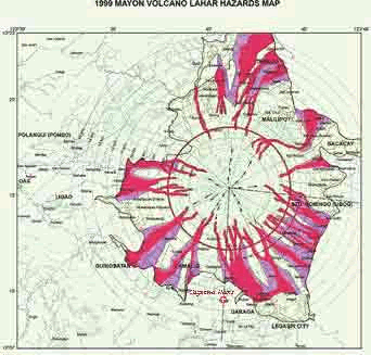 Beauty and Horror of Mount Mayon The Philippines are laying in the shifting area of three earth plates, which push each another in different directions. These shifts cause tectonically disturbances. The largest zone of disturbance is situated in the North-South-direction of Luzon to Mindanao and here along this line most of the approximately twenty active volcanoes on the Philippines are situated. The most active – however also the most beautiful volcano in this chain of volcanoes - is the Mount Mayon situated near Legaspi. The silhouette of his almost perfect triangle or cone form dominates the panorama the panorama of the eastern landscape of the province Albay. Even if the Mount Mayon with his 2462 meters is not particularly high, with a scope of approximately 130 kilometres it builds himself up like an outsized king Ubu in front of the observer, which gets the feeling to be very small. Steeply, the dark mountain-flanks fall into green coconut forests or fertile rice-fields. Mostly a crown of steam appears at the crater-edge and frequently in the late morning a white ring of clouds rises up the mountain, covering parts of the mountain. With the naked eye the observer can see the red-black coloured ravines of deeply rinsed forty canyons. According to prevalent opinion, the two young Scots Paton and Steward have been the first, which climbed the mountain in 1858. Today the climbing of the mountain in a 2 -3 days tour is still possible, even if the number of the official routes is reduced to only one on the south-west-side because of the dangerousness of the mountain. But it is strongly recommended to take the help of native mountain guides. Only a limited crater-access is possible. Jens Peters (1) respectively Jens Edelmann under www.vulkane.net/reportagen/repmayon.html