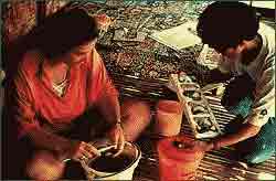 Fishers of the place of Handumon report that they could still collect at least fifty animals per night in 1985. From 1985–1995 the harvest dropped however by more than 70 percent. In May 1999, the little amount of round about six Pesos was paid for a dried sea horse. 300 to 450 sea horses amount one kilo. In Cebu, the kilo-price was in this time 2200–2800 Pesos, that corresponds to approximately 55 -70 $, with an assumed rate of exchange of 40 Pesos per dollar. Ten years ago, the kilo-price for dried Sea horse in Hong Kong ranged between 250 U.S. $ for "inferior" small, brown species and 850 U.S. $ for large, bleached species. Living sea horses have been sold for more than 1400 U.S. $/ kg. The "Seahorse"-Project of the Haribon Foundation In order to safeguard the population of sea horses on the Philippines , Dr. Amanda Vincent, a well known Canadian sea horse expert, initiated in 1994 the integrated protection-program "Seahorse" in Handumon. The project has the objective to protect the long-term persistence of sea horses and to develop simultaneously alternative livelihoods for the poor village-community. Other activities are local studies of the biology of the animals, analyses of the world-wide markets and the proceeding of environment-seminars. In cocorporation with local representatives and the majority of the local fishers a 33- hectare reserve was created, in which all fishing is prohibited. Additionally, mangrove-forests were re-established. Pregnant sea horse males are now getting release or are brought into particular network-receptacles until the slipping of the brood. The young descendants can slip through the stitches of the cages while the old animals can be sold after a certain growth-time with a higher price. A little loan, which they got for the caught of pregnant young-fish, can now repaid with help of the higher price. Additionally, further sources of income for the fishers were looked for. They found these in the cultivation of seaweed, establishing of fish-farms, the manufacture of wooden cut-outs or plated (handbags and beach-mats) objects for tourists, and in the eco-tourism. The initiatives have led to an increase of income of the fishers and a higher population of sea horses. Three other villages are following the example of Hanumon. In order to decrease the pressure on wild populations, there have been experiments of breeding seahorses in tanks - even if there is within the traditional Chinese medicine a preference for wild animals. The experiments showed different results. The main-problem is the economic feeding of the sea-horses. It is necessary to get large quantities of certain algaes, to settle the zooplankton, from which the predatory sea horses nourish themselves. In Australia, three generations of the sea-horse species "hippocampus kuda "have been cultivated successfully. Another attempt on Jolo in the year 1992 showed only a survival-quote of twelve percent because of illness of the animals. According to the prevailing opinion lab-born seahorses are too expensive. Dr. Amanda Vincent therefore pleads for a bordered breeding in the natural habitat. Because of the worldwide decline of populations and to provide legal protection to the seahorses a convention was passed in November 2002 in Santiago, Chile. Now all types of sea horses are listed in the appendix II of the „Convention on international Trade in Endangered Species". The obligation to report imports is however only one initially-step in direction of a stronger protection of the sea-horse populations. © Wolfgang Bethge, 2003 |