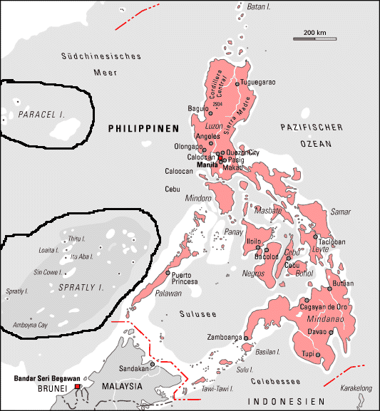 After a thumb rule only about ten percent - particularly in the offshore area - can produced economically. In 1997 the oil production in the South-Chinese Sea was approx. 1,4 million barrels - at approximately 47 % have been produced in Malaysia, 11 % in Brunei and in the Philippines only 0,1 %. Gas Production in the South-Chinese Sea amounted in 1997 to approx. 2,3 billion Cubic Feet - Malaysia produced approx. 56 %, Thailand approx. 21 % and the Philippines under one percent. With look to the small amounts in particular in the Spratly Islands a leading consultant of an American exploration company says that the deposits are hardly worth the risk of war.