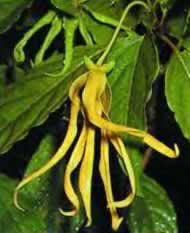 Normally, the extraction of the brightly-yellow to yellow-brownish oil is made by a several-hour steam- distillation of the flowers. Depending on the distillation phase, three sometimes four fraction quality grades are known. The first distillation - it delivers approx. 40% of the complete quantity of oil - produces the best scent. This fraction is called "Ylang-ylang extra ". The following fractions deliver the "Ylang-Ylang" - oil or the cheaper, less fragrant "Canaga Oil", which is used for the manufacture of soaps and detergents. If there is no fraction of oil, it is called "Complete Oil." The different plant species and climatic factors have an influence on the quality of the produced oil. There are certain ISO standards for export oils which are not always reached in the local production. If the technical prerequisites of water distillation are not at disposal, the drying of the blossoms is an alternative way. The dried flowers can be used as raw material for the manufacture of soaps and insecticides. The special situation in the Philippines The Ylang-Ylang tree is native in the Philippines and parts of Indonesia. Already in ancient time Ylang-Ylang flowers have been used - often together with Sampaguita flowers (description of plant: here) for decorative fragrant arrangements and bouquets. Sometimes the flowers served also as defence of bad spirits. From Indonesia we hear that the beds of new wedded bright pairs were adorned with flower tassels and the use of Ylang-Ylang oil by harem-women. In China gowns of rich mandarins have been moistened with the scented oil before putting them into textile chests. It is less known that the Philippines before the first World War had a monopoly on the production of the oil. It was a F. Steck (1858 -- 1880), a German pharmacist, who produced the first time a high-quality Ylang-Ylang oil on a commercial basis with the help of distillation equipment imported from Germany. The European perfume industry of the ending 19th century (Victorian epoch) was an interested buyer of the oil, which was used particularly as Macassar oil in the context of hair care. But with World War I and the stronger competition from other countries (particularly Reunion Islands, Madagascar, Comoro-Islands) a decline in the Philippine oil production took place., because the German producer lost their export markets. Presumably Coco Channel did not use anymore Philippine oil, when she brought in 1923 her famous Ylang-Ylang oil based perfume "Chanel No. 5" on market. The second World War strengthened the decline. Distilleries were closed and many trees cut. The flowers of the Ylang-Ylang tree were only used for decorative purposes , the production of oil falls into oblivion. At the end of the eighties the cultivation of Ylang-Ylang trees and the commercial production of oil experience a renaissance again in the provinces Pampanga and Tarlac. In Pampangas places of cultivation with round about 14,000 trees are especially Guagua, Lubao and Floridablanca. In the province Tarlac particularly the town of Anao has to be mentioned. Anao is sometimes praised to be the town with the best scent in the Philippines. They started in 1989 when 10,000 trees on 2500 hectares of land were planted with governmental support to improve the income situation of the rural population. The first cultivators had to learn the hard way. The capacity of the steam distillation machine wasn't sufficient and they did not reach the quality level required for the export of the oil. By now the situation has improved considerably. Now they have an energy and personal saving 50 kg – distillator which ensures a higher yield. The plantations have been enlarged and the number of the trees increased to 20,000. Three kilos of flowers were sold for about 50 pesos in 2003. A litre of excellent perfume oil was sold for approx. 10,000 pesos. This corresponds to round about € 170. In the Internet trade 10 ml are often offered for 10 €, that corresponds a litter-price of almost € 1000. So the flowery sweet oil goes up in price by impressive 590 % cent on his way from the Philippine producer to the European consumer. The use in the cosmetics The oil has a jasmine like scent and smells sweet fruity-flowerily. It can be used unblended or blended with other perfume oils, for example with jasmine-, roses-, bergamots-, lemons- or sandalwood-oil. The Ylang-Ylang oil gives blended perfumes a warm, elegant aroma. We find Ylang-Ylang oil in perfume brands like "Acqua di Gio" of Giorgio Armani,"Poison" of Christian Dior or "Champ Elysee" of Guerlain. Ylang-Ylang oil can also be a component in bathing oils. And now we are speaking from the emotional qualities, which are particularly propagated by aroma therapists. They praise the fragrance of oil especially because of its relaxing and anti depressive effects. They pretend, that the oil used as massage-, bath oil or room spray could reduce stress, timidity, stubbornness well as sexual frigidity. Even aggressive dogs could be calmed. Aphrodisiac oils for example can be produced with equal parts of jasmine-, sandalwood- and Ylang-Ylang oil. Another Aroma therapist recommends for a "wonderful" a blend of oils consisting of six drops of muscatel sage, two drops Ylang-Ylang and two drops of jasmine. But do not exaggerate - too high concentrations can cause headaches and nausea. Maybe a comparison test between the "love-oil" and Viagra could bring new surprising results also with regard to financial costs. There are also various indications of the oil in the field of medicine. In the skin care it removes eczemas and acne and calms the itching at insect bites. It kills pathogens and is effective at intestines infections and stomach troubles. The oil cleans the blood and lowers the blood pressure. On the other hand – what a miracle - it helps at erection disturbances. The oil breaks down sleeplessness, depressions, nervousness and relaxes at menstruation troubles. The miracle cure see